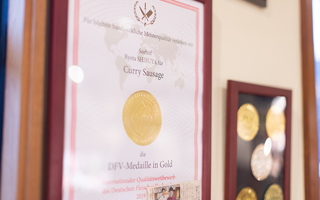 ドイツでハム・ソーセージ作りの修行を重ねて、3年に1度開かれるソーセージのオリンピックと称される国際食肉職人協議会で国際チャンピオン賞を受賞しました。